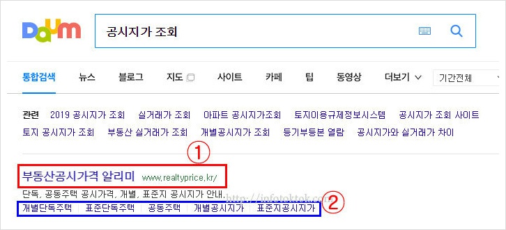 다음이나 네이버 구글 등의 검색창에 공시지가 조회를 검색해 볼께요.