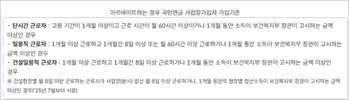 <아르바이트하는 경우 국민연금 사업장가입자 가입기준>