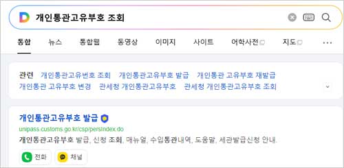 - 네이버나 다음, 구글 검색창에 '개인통관고유부호' 또는 '개인통관고유부호 조회'라고 입력해요.