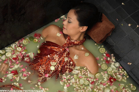 3. 몸이 완전히 잠기도록 한다음 쌀겨 주머니로 전신을 문질러 주면 된다고 합니다.