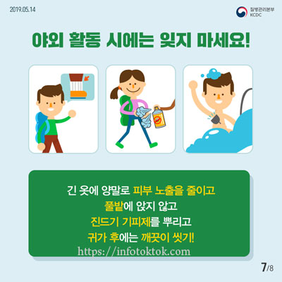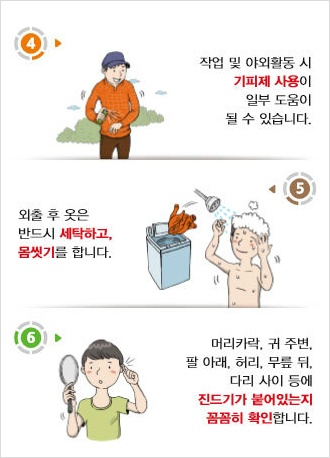 4. 작업 및 야외활동 시 기피제 사용이 일부 도움이 될 수 있다고 해요.