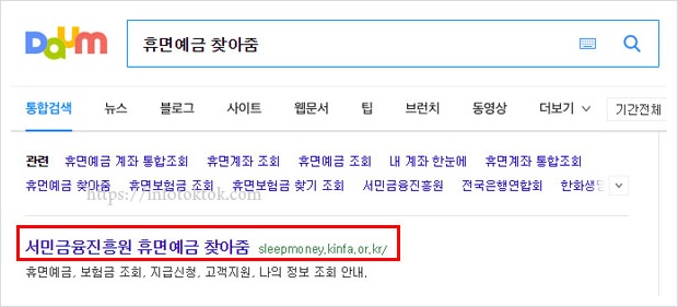 휴면예금 찾아줌을 검색합니다.