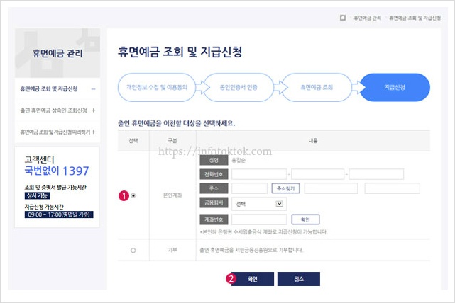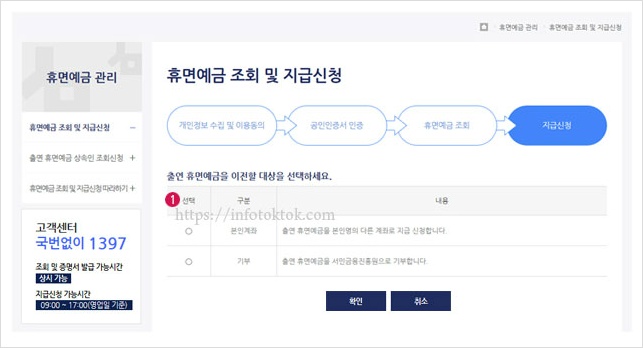 ③선택한 휴면예금을 지급 받거나 기부신청도 가능합니다.