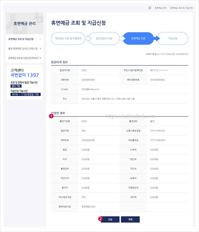 휴면계좌 조회 및 예금에 대해 지급신청이 가능합니다..