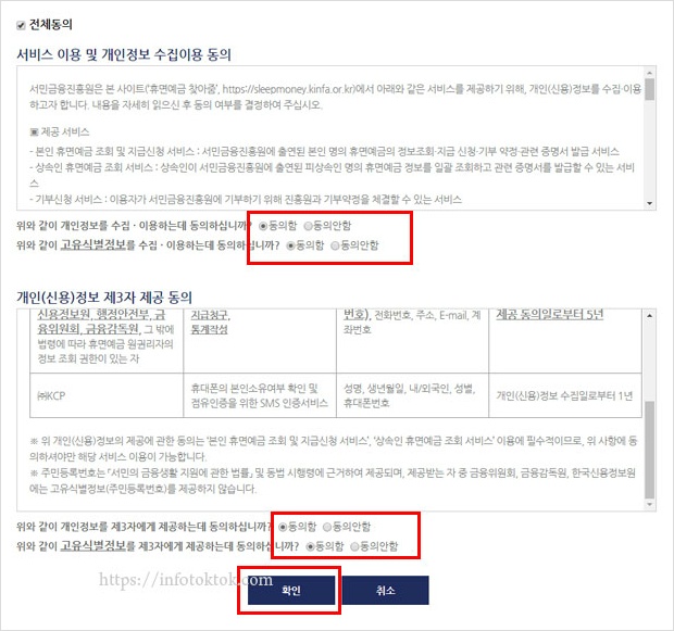 먼저 개인정보 수집 및 이용에 동의를 합니다.
