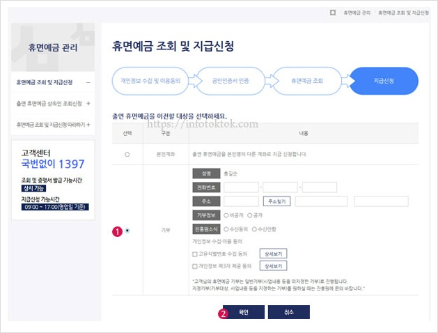 ②을 클릭 하게 되면 휴면예금 출연 및