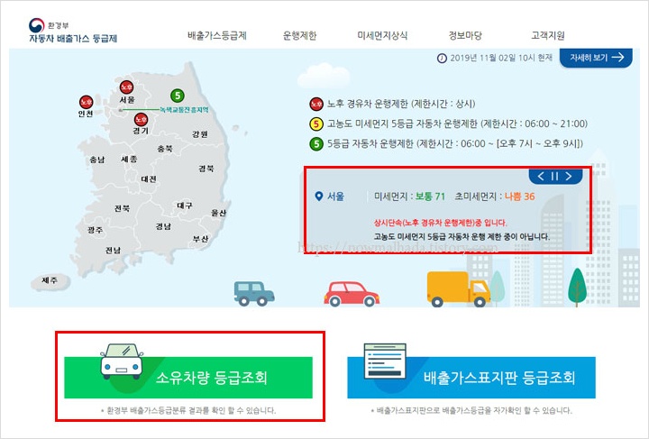 비상저감조치 차량 조회 운행제한 배출가스 5등급 차량 확인 방법은?