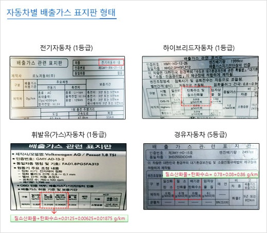 배출가스 표지판 확인을 통해서도