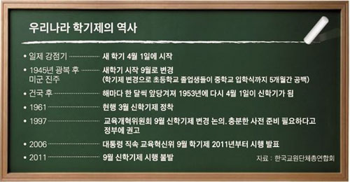 현재 봄에 첫 학기를 시작하는 국가는 경제협력개발기구(OECD) 회원국 중 한국과 일본, 호주 뿐이라고 합니다. 대부분의 나라가 9월 신학기제를 채택하다 보니 한국인이 유학을 가거나 외국인이 유학을 오는 경우에 6개월간의 공백이 생긴다는 것이죠.