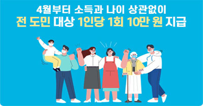 ▶ 나이, 소득, 자산, 성별, 직업 등을 가리지 않고 경기도민이기만 하면 1인당 1회 10만원을 지급.