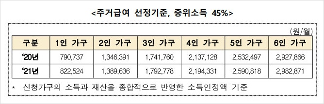 2021년 주거급여 수급자 선정기준이구요.