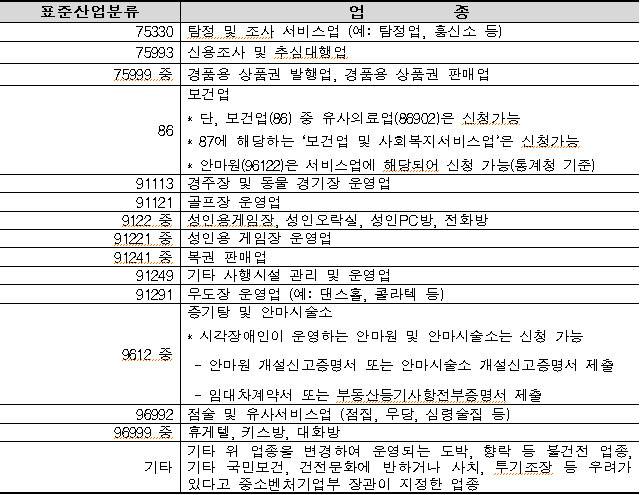 ◈ 참고로 소상공인 정책자금 융자제외 대상 업종은 아래와 같다고 합니다.