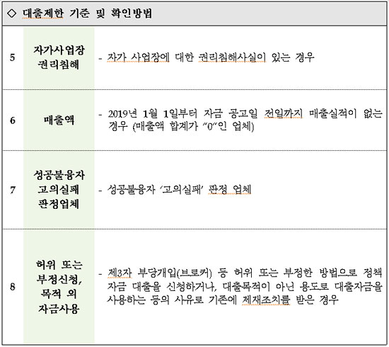 ◈ 코로나 소상공인 긴급대출 제한대상.