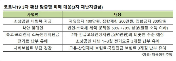 참고로 코로나19 확산으로 피해를 입은 소상공인에게 100만~300만원을 지급하는 3차 재난지원금 버팀목자금 사업 또한 다음 달 6일 공고되는데요. 소상공인과 특별피해업종 버팀목 자금은 1월 11일에 안내 문자를 발송한 뒤 온라인 신청을 받기 시작해 1월 중 지급을 완료하는 것이 목표라고 해요.
