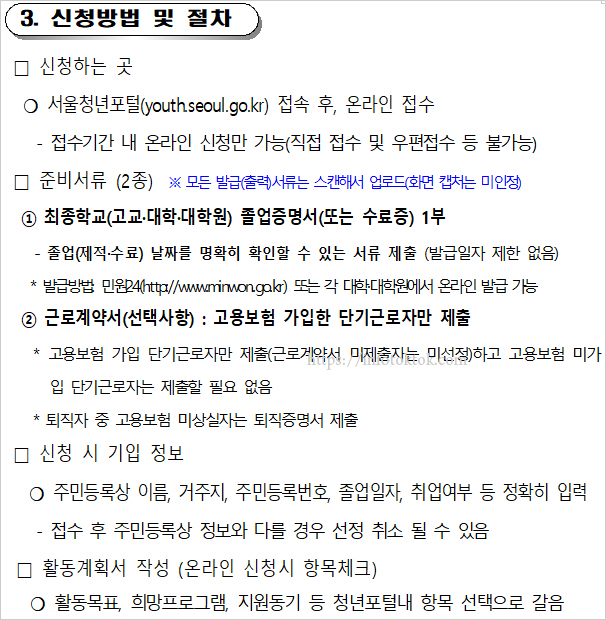 3. 서울시 청년수당 신청방법 및 절차