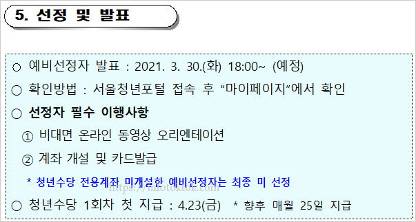 5. 선정 및 서울시 청년수당 발표