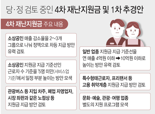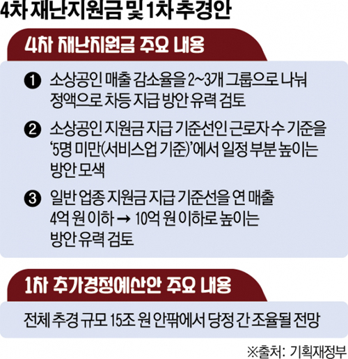 이와 별도로 현재 제조업 10인 미만, 서비스업은 5명 미만인 소상공인 지원금 기준을 완화하는 방안도 검토되고 있다고 하는데요. 5명 이상을 고용한 소상공인은 지원금 지급 대상에서 상당수가 제외됐는데 당정은 고용 유지를 독려하기 위해 지원금을 지급하는 방향으로 의견을 모으고 있다고 해요.