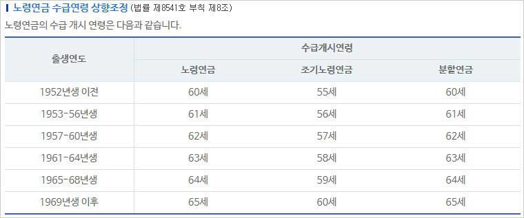 2. 1968년생 노령연금 수령시기 및 수령년도