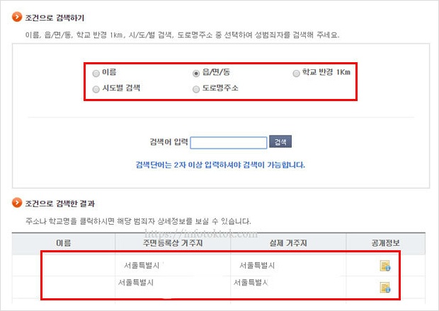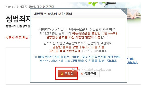 단 열람정보는 성범죄 우려가 있는 자를 확인할 목적으로만 사용해야 합니다.