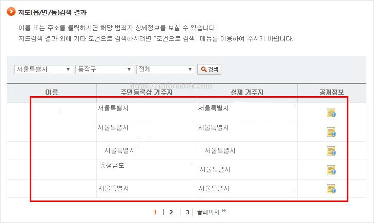 이렇게 우리동네 성범죄자 목록이 보여집니다.