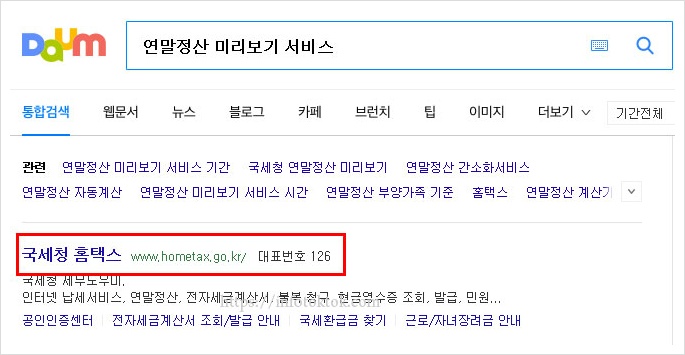 연말정산 미리보기 서비스를 검색하면