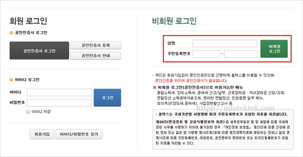 개인은 회원가입없이 본인인증만으로도