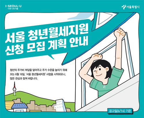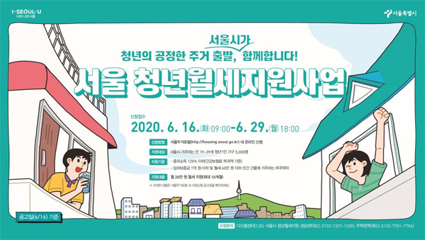 서울시 청년월세 지원 신청방법은 6월 16일부터 29일까지 서울주거포털(http://housing.seoul.go.kr)에서 '서울 청년월세지원' 신청접수를 받고 있다고 합니다. 이후 7월 중 소득재산 의뢰 및 조사를 거쳐 8월에 지원대상자를 발표합니다. 9월부터 서울 청년월세 지원금 지급을 시작한다고 합니다.