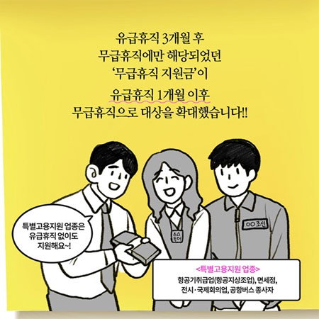 기존에는 3개월 유급휴직 후 90일 이상 무급휴직을 실시해야 지원 대상이 되었습니다. 하지만 이번 무급휴직자 150만원 지원 내용을 담은 무급휴직 신속지원 프로그램 사업은 지원 요건을 대폭 완화했다고 합니다. 여행업과 관광숙박업 등 코로나19 영향으로 특별고용지원 업종으로 지정된 업종의 경우 지난 4월 말부터 지원 대책이 시행중에 있습니다. 이런 가운데 일반 업종도 관련 시행령 개정을 거쳐 7월 1일부터 시행하기로 했다고 합니다.