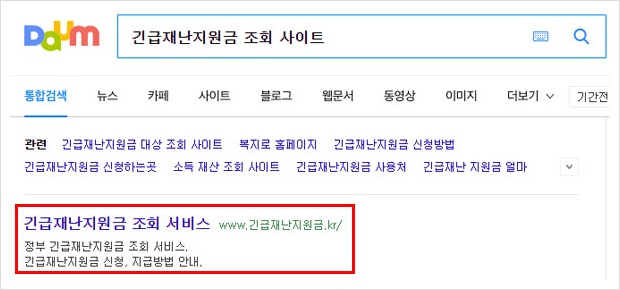 다음이나 네이버 구글 등 검색창에 긴급재난지원금 조회나