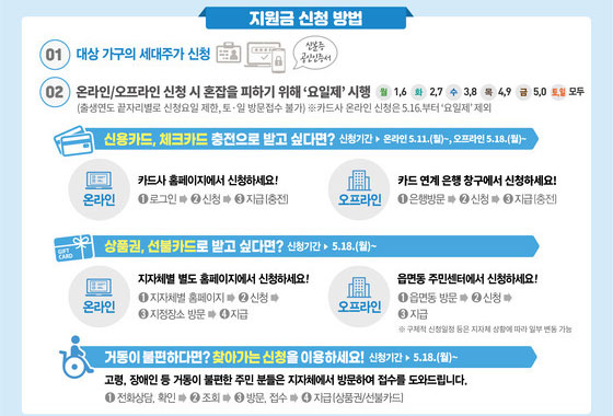 ▶ 신용카드 및 체크카드로 받는 긴급재난지원금 온라인 신청은 16일부터는 요일제에서 제외된다고 해요.