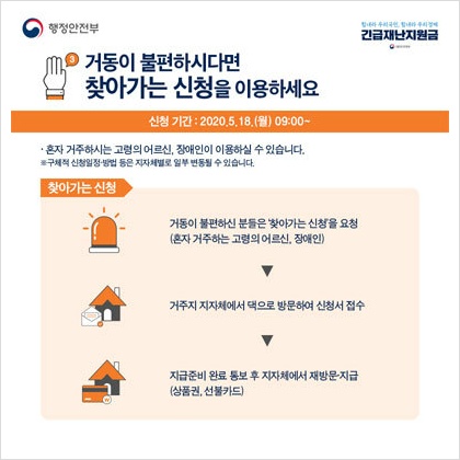 방문 신청은 5. 18.(월) 09:00부터 주소지 관할 주민센터에서 가능하다고 해요.