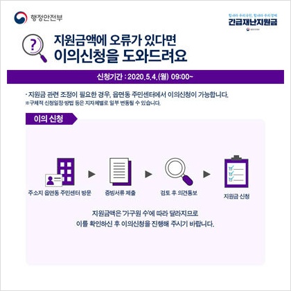 ▶ 지원금 관련 조정이 필요한 경우 읍, 면, 동 주민센터에서 이의신청을 할 수 있죠.