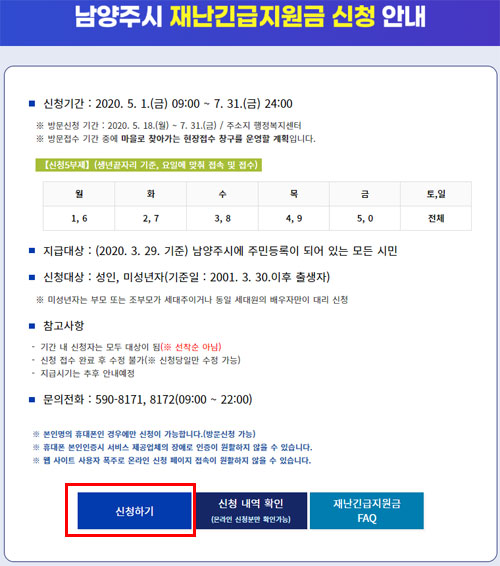 ◈ 남양주시 재난기본소득 긴급재난지원금 신청기간