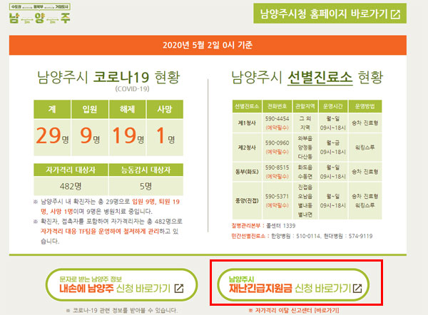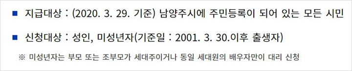 ◈ 남양주시 긴급재난지원금 신청대상