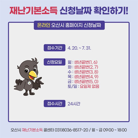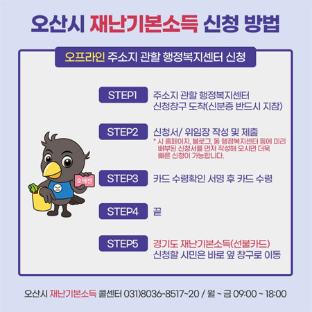 <오프라인 각 동 행정복지센터 오산시 재난기본소득 신청날짜 확인합니다.