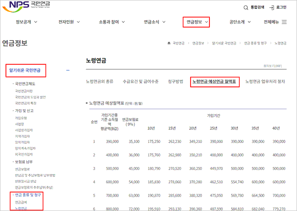 ▶ 국민연금 예상연금월액표로 알아보는 국민연금 예상 수령액 조회 방법