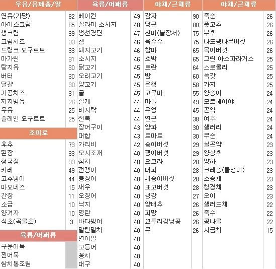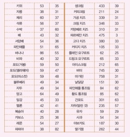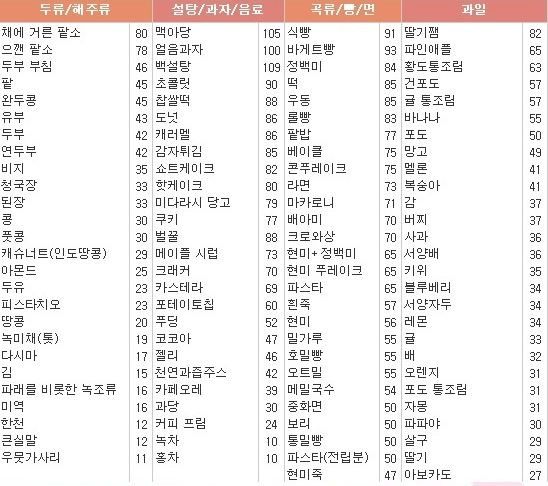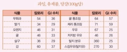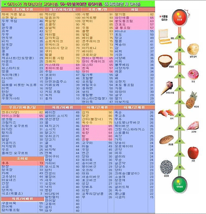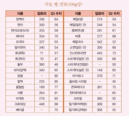 같은 군이라고 해도 차이가 나는 GI지수네요.