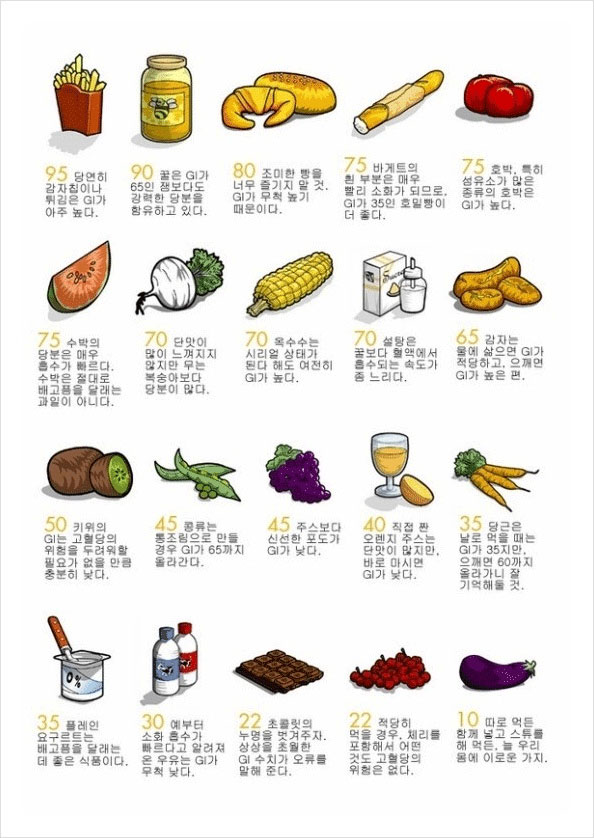 역시 단맛이 느껴지는 것들은 GI지수 높은 음식이네요.