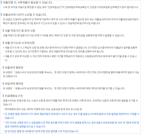 대출 유의사항으로는
