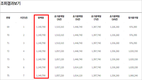 동일한 조건으로 4억 아파트 주택연금 수령액 계산 방식을 적용해보면 약 1,140,790원을 수령할 수 있는 것으로 나왔습니다.
