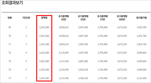 1억 아파트 주택연금 신청시 모두 만 70세 이상이라면, 배우자가 만 70세 미만이였던 주택연금 수령액(285,200원)과 차이(297,540원)가 발생하는 것을 주택연금 수령액 계산 결과를 통해 확인할 수 있습니다.