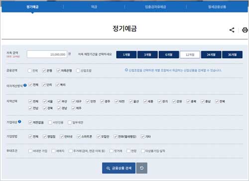 - 지역: 특정 지역 거주자만 가입 가능한 상품을 찾기 위해 희망하는 지역을 선택할 수 있습니다.
