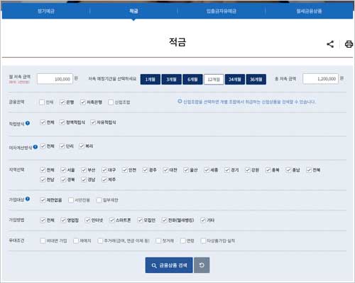 - 금융 권역: 금리가 높은 곳을 중심으로 선택해 보세요.
