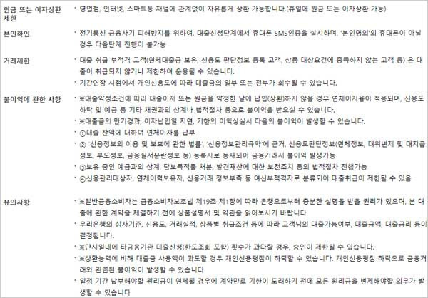 대출 유의사항으로는