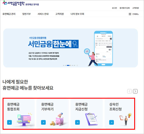 내 예금 찾아줌 휴면계좌 돈찾기 홈페이지 사이트 서민금융진흥원 휴면예금 찾아줌 홈페이지 주요 특징 및 서비스
