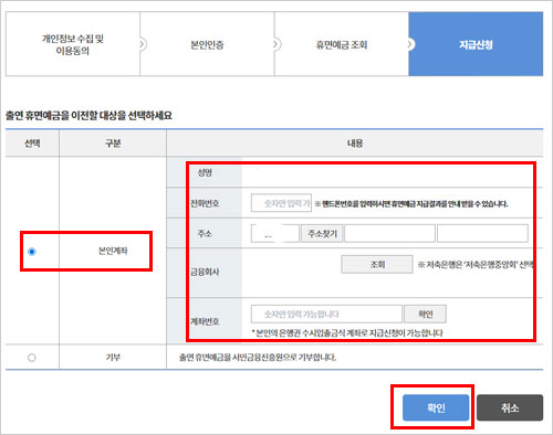 - 50만 원 이하 소액: 은행 예금의 경우, 50만 원 이하의 소액은 온라인에서 즉시 계좌로 이체받을 수 있구요.