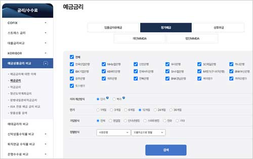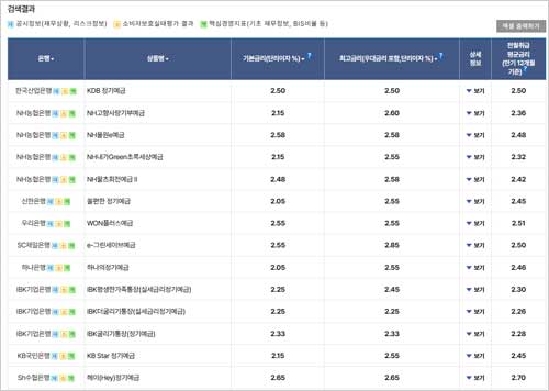 설정한 조건에 따라 모든 은행의 예금 상품 금리 정보가 화면에 나타난다고 해요.