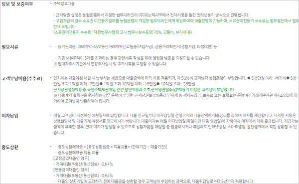 농협 주택담보대출 금리비교 조건 및 상환방법, 중도상환수수료, 한도, 필요서류, 금리, 신청대상 자격조건 알아보기