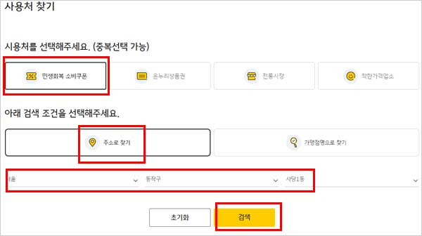 ▶ 민생회복 소비쿠폰 지원금 사용지역