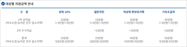 ▶ 민생회복 지원금 소비쿠폰 지급대상 및 지급 금액